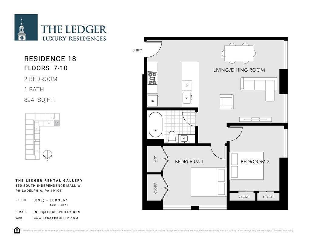 The Ledger Residences ofrece apartamentos de Estudio a 2 Dormitorios desde $1,750 con 380–1,027 pies cuadrados. Aquí está el precio actual y la disponibilidad: