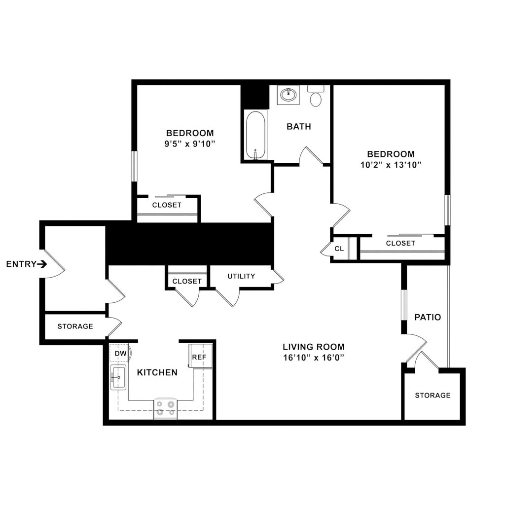 2 Dormitorios, 1 Baño, 750 pies²Disponible Dec 6Galería del Modelo