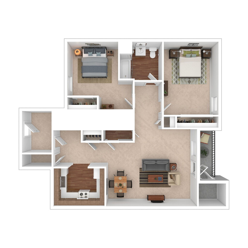 The Ledges ofrece apartamentos de 1 a 3 Dormitorios desde $1,075 con 650–840 pies cuadrados. Aquí está el precio actual y la disponibilidad: