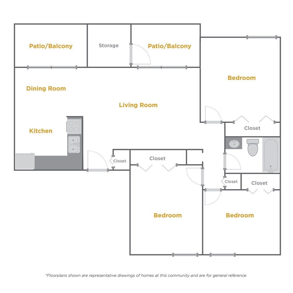 Modelo de apartamento: 1x1 680$1,1571 Dormitorio, 1 Baño, 680 sq ftNo Disponible![]()
