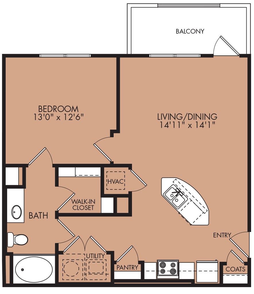 1 Dormitorio, 1 Baño, 659 pies²Disponible AhoraGalería del Modelo