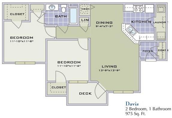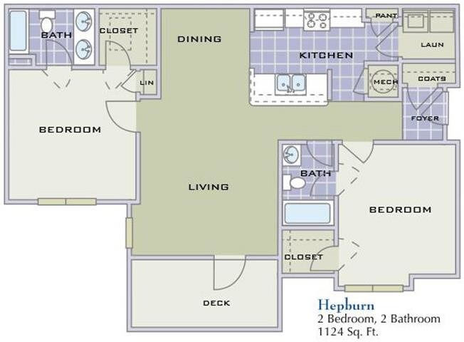 Modelo de apartamento: MonroeDesde $1,3291 Dormitorio, 1 Baño, 807 sq ftDisponible Ahora![]()
