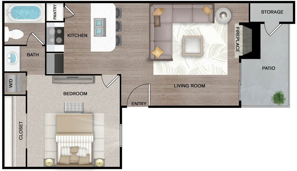 1 Dormitorio, 1 Baño, 634 pies²Disponible AhoraGalería del Modelo