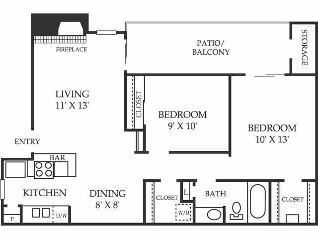 2 Dormitorios, 1 Baño, 800 pies²Disponible AhoraGalería del Modelo