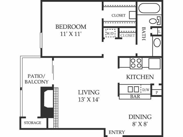 1 Dormitorio, 1 Baño, 723 pies²Disponible AhoraEl más grandeEsta opción tiene las unidades más grandes para este modeloGalería del Modelo