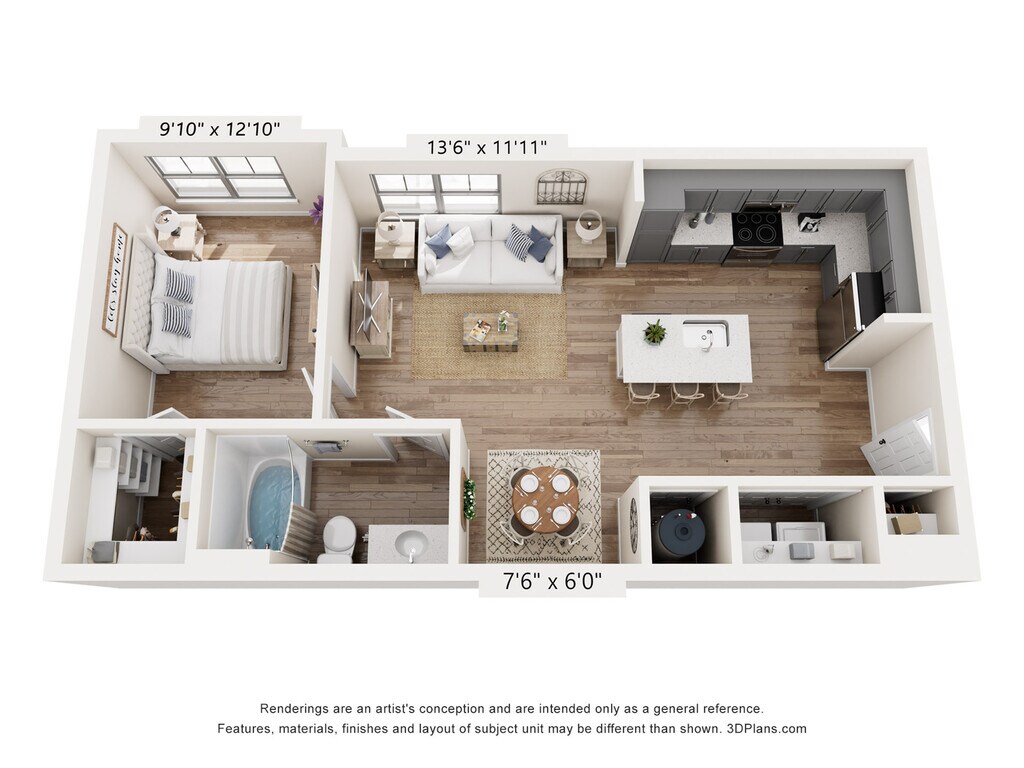 1 Dormitorio, 1 Baño, 761 pies²Disponible AhoraGalería del Modelo