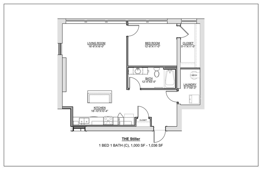 Modelo de apartamento: The Stiller$1,9141 Dormitorio, 1 Baño, 1000 sq ftNo Disponible![]()