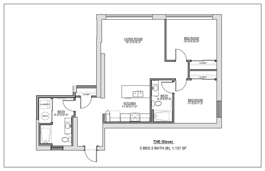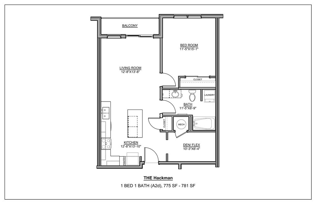 Modelo de apartamento: The Hackman$1,7311 Dormitorio, 1 Baño, 781 sq ftNo Disponible![]()