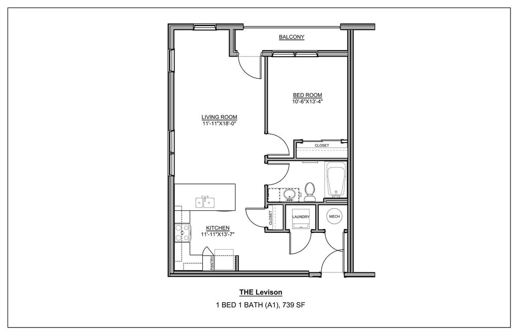 Modelo de apartamento: The Levison$1,8191 Dormitorio, 1 Baño, 754 sq ftNo Disponible![]()