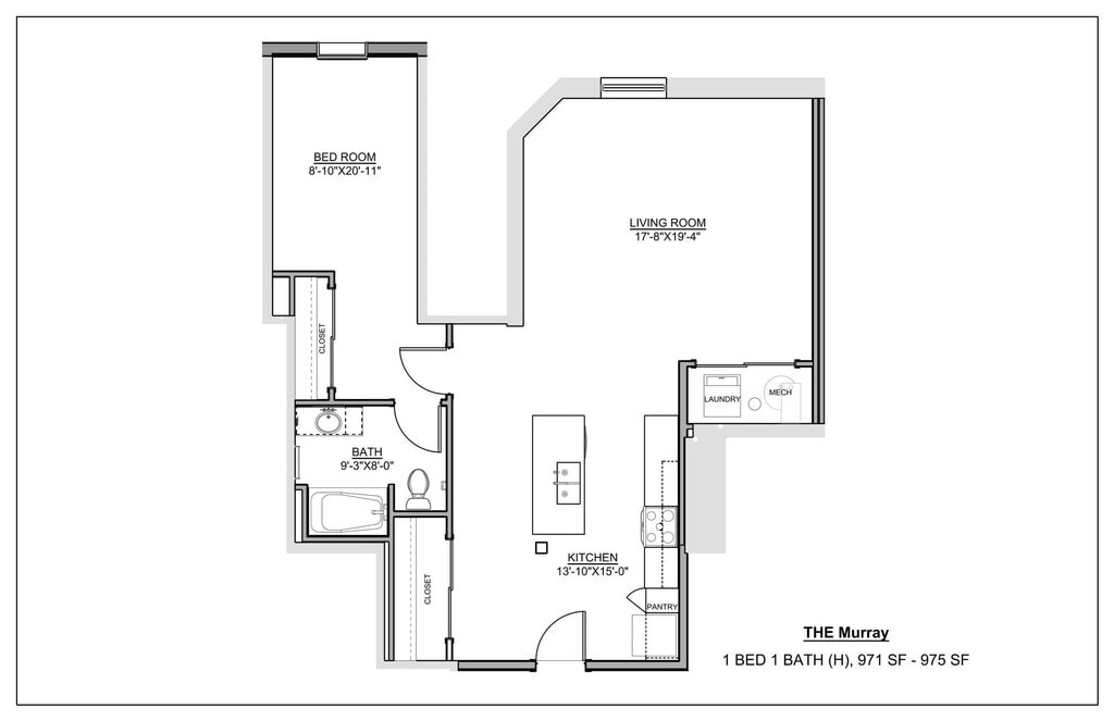 Modelo de apartamento: The Murray$1,6891 Dormitorio, 1 Baño, 973 sq ftNo Disponible![]()