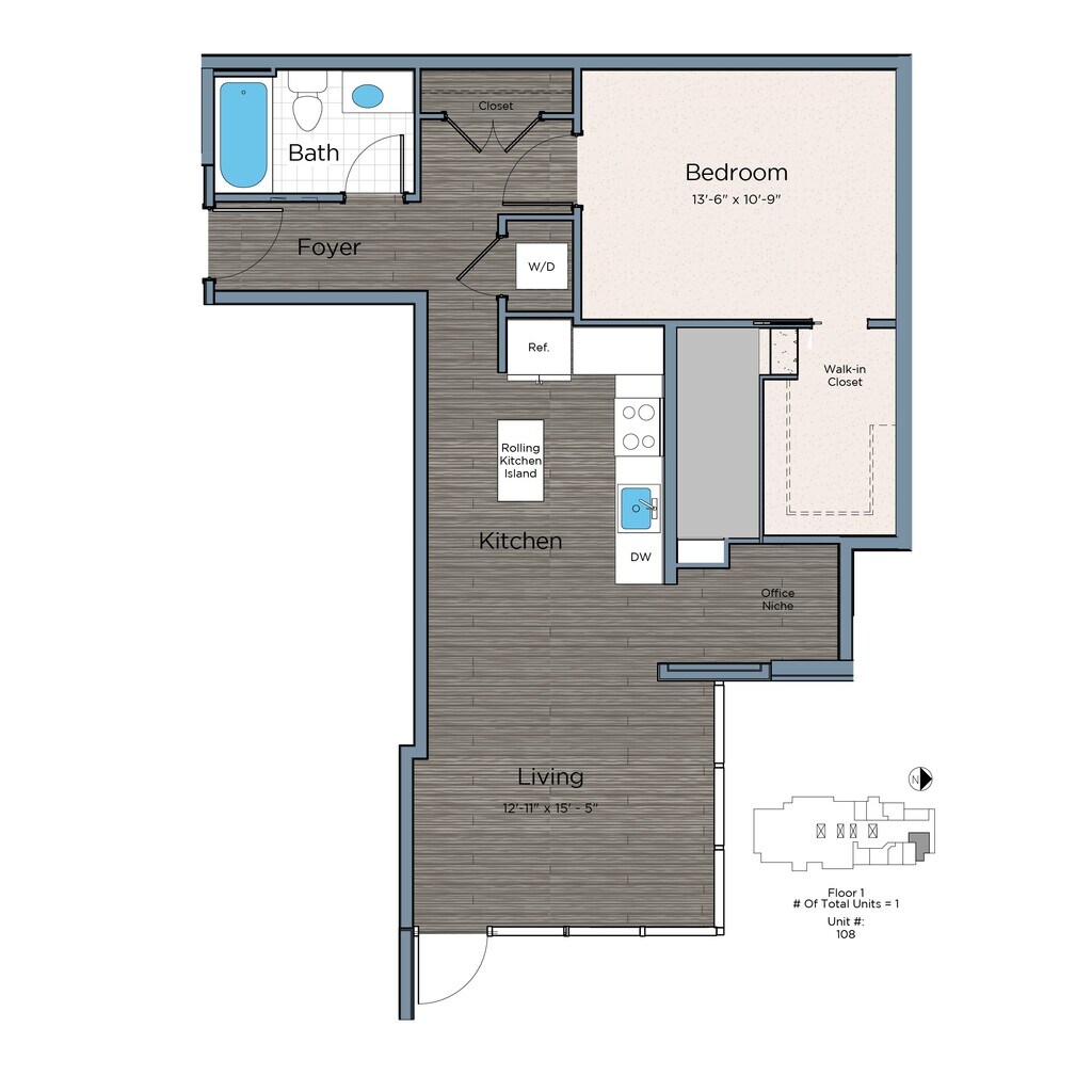 Estudio, 1 Baño, 396 pies²Disponible AhoraGalería del Modelo