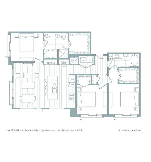 1 Dormitorio, 1 Baño, 836-863 pies²Disponible AhoraGalería del Modelo