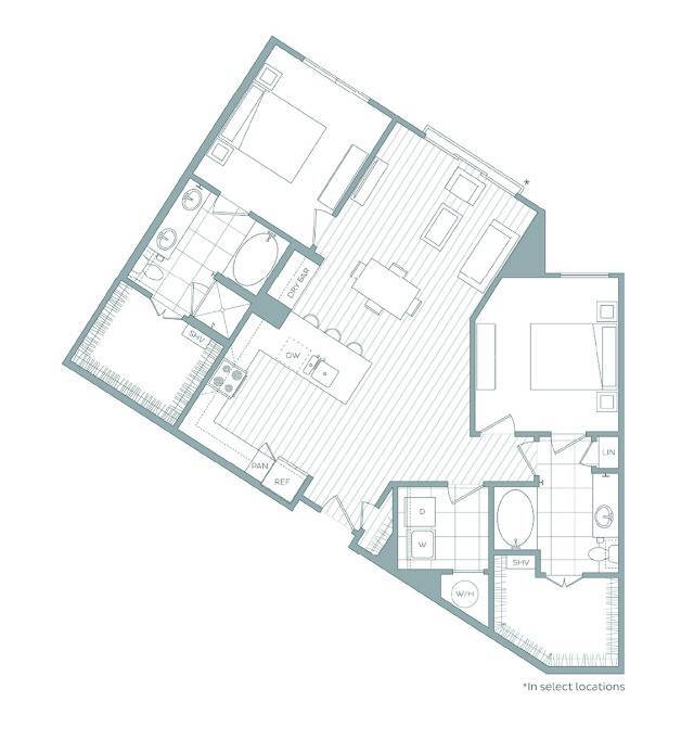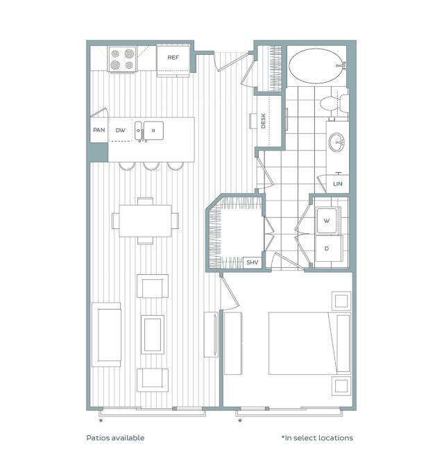 Modelo de apartamento: DDesde $1,5311 Dormitorio, 1 Baño, 765-768 sq ftDisponible Ahora![]()