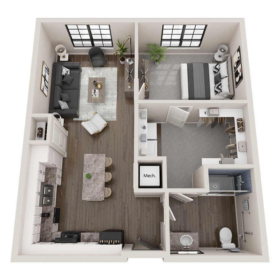 1 Dormitorio, 1 Baño, 679 pies²Disponible February 6, 2026Galería del Modelo