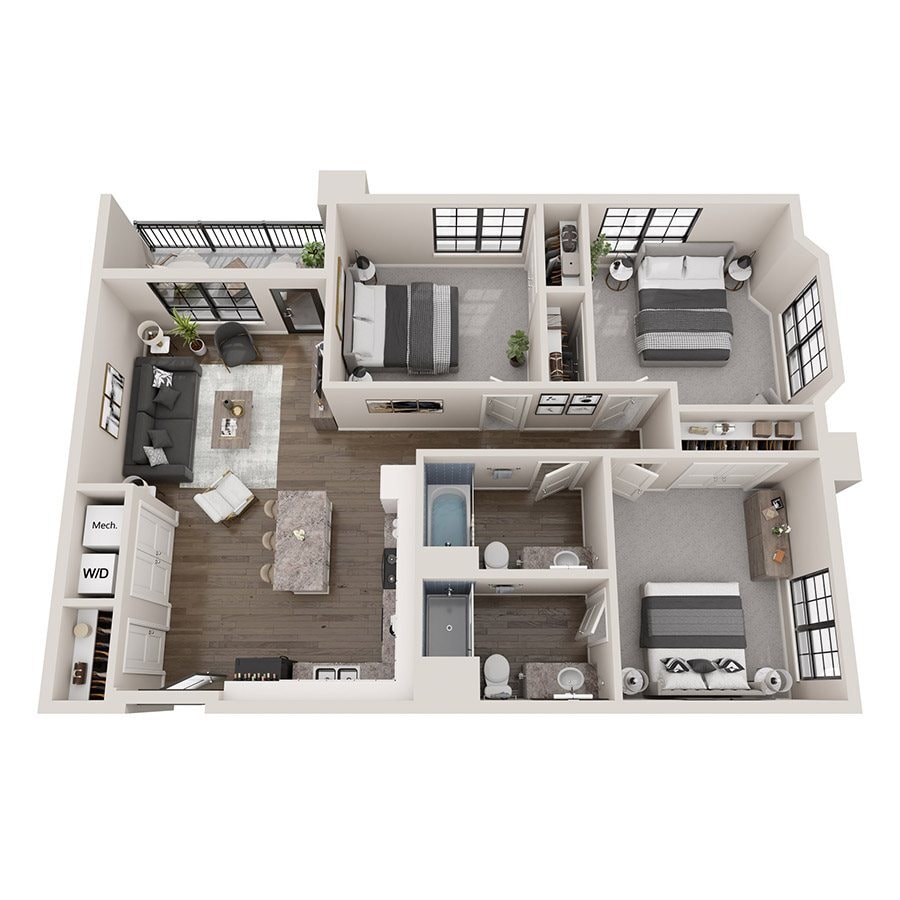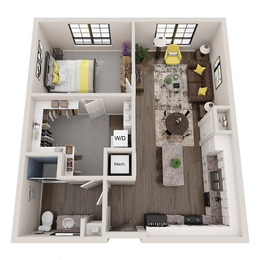 The Washington - Plano 1 Unidad de apartamento: 106AModelo de apartamento: The Washington$1,4951 Dormitorio, 1 Baño, 747 sq ftDisponible February 5, 2026The Indiana
