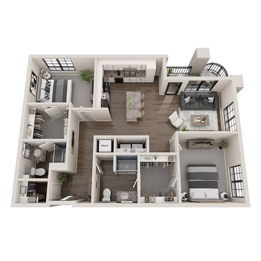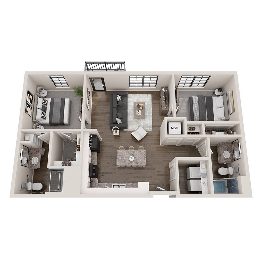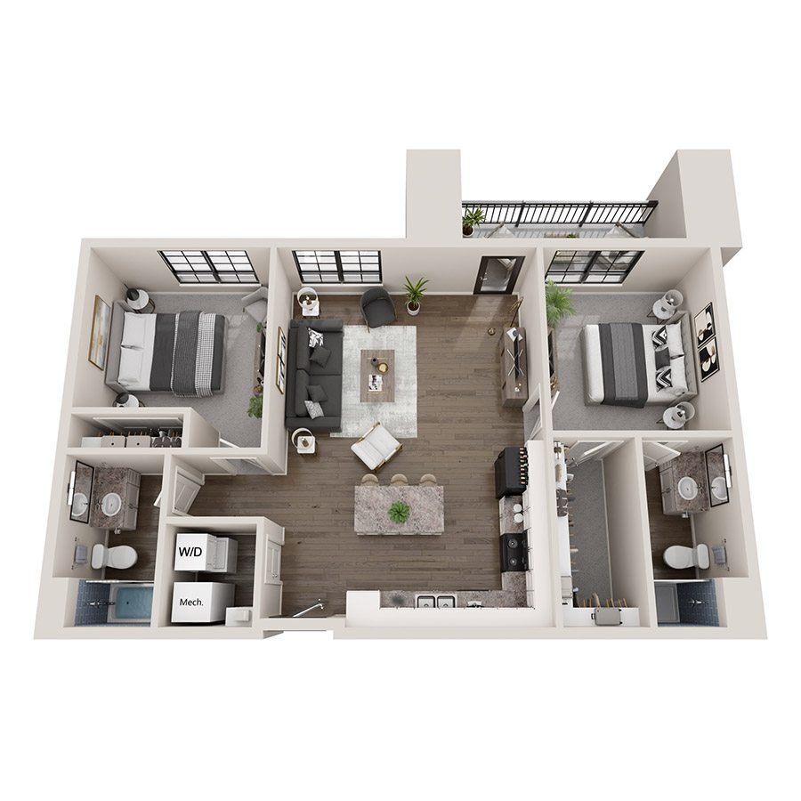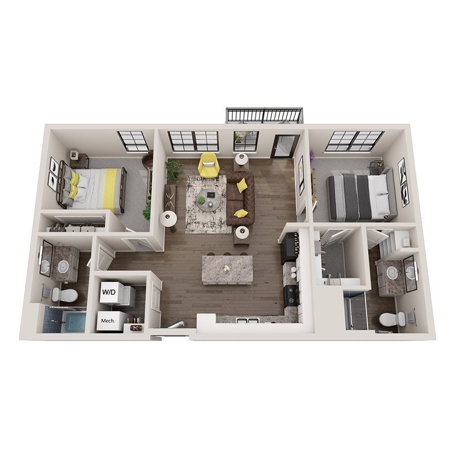 1 Dormitorio, 1 Baño, 747 pies²Disponible February 5, 2026Galería del Modelo