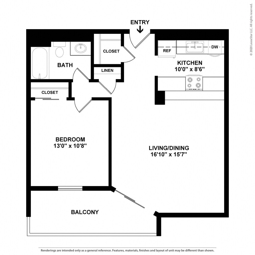 Modelo de apartamento: A1 - 1 Bedroom1 Dormitorio, 1 Baño, 655 sq ftDisponible Ahora![]()