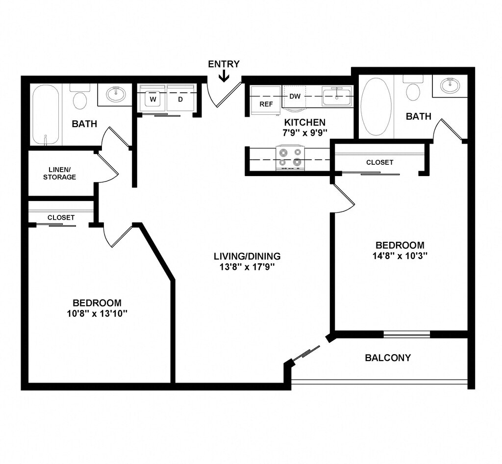 Modelo de apartamento: B1 - Two Bedroom2 Dormitorios, 2 Baños, 913 sq ftDisponible AhoraPlanosFotos![]()