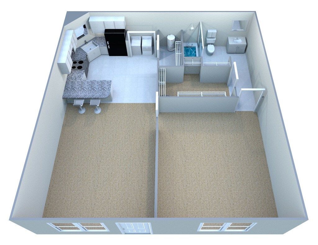1 Dormitorio, 1 Baño, 545 pies²Galería del Modelo