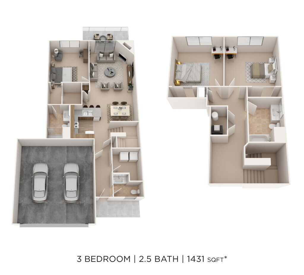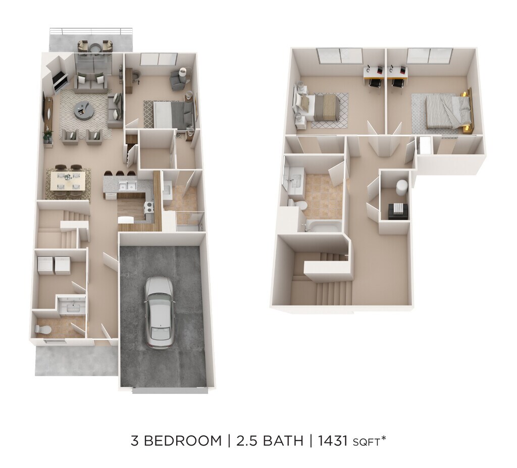 Ver Planos No DisponiblesTwo Bedroom 2.5 Bath Townhome - 1,356 sqft