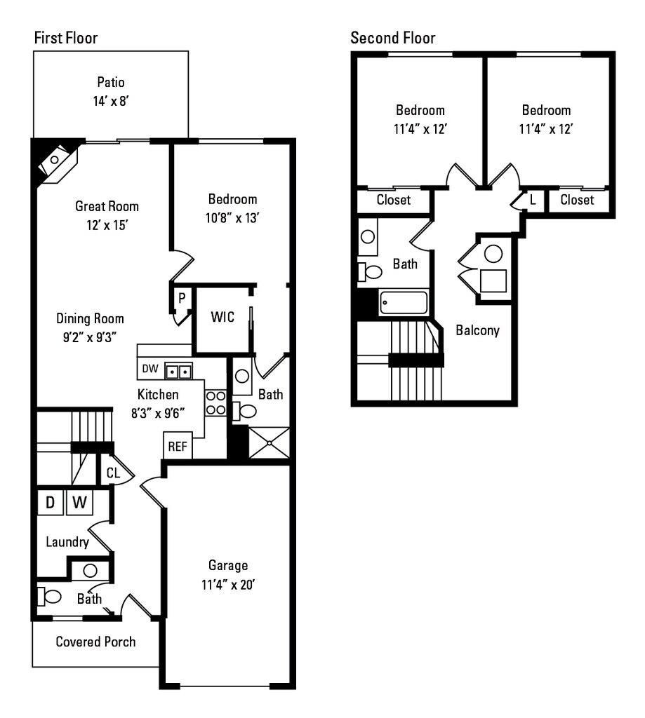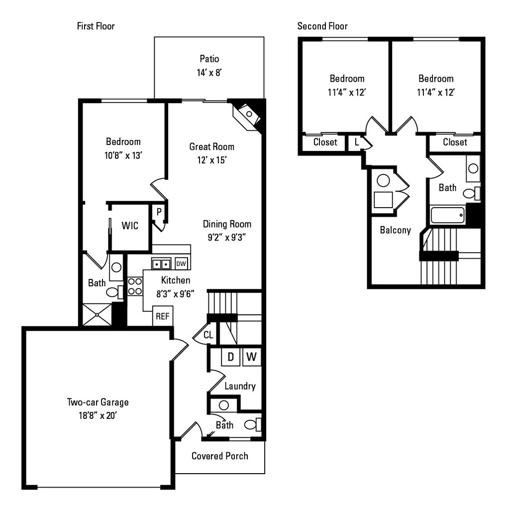 Two Bedroom 2.5 Bath Townhome - 1,356 sqft - Plano 1 ![]()