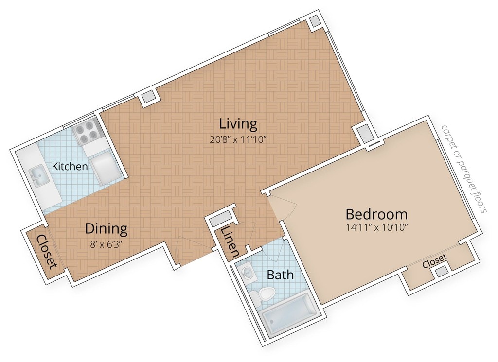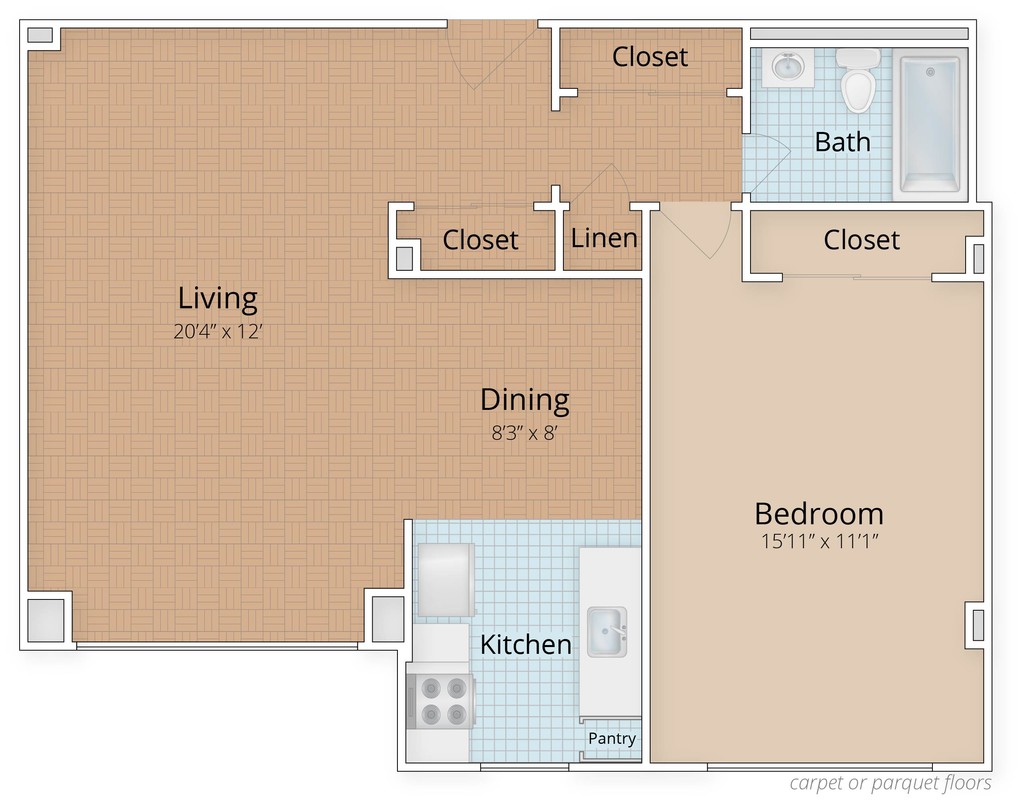 One Bedroom - Plano 11 Unidad de apartamento: 203Modelo de apartamento: One Bedroom1 Dormitorio, 1 Baño, 752 sq ftDisponible AhoraUnidad de apartamento: 402Modelo de apartamento: One Bedroom1 Dormitorio, 1 Baño, 625 sq ftDisponible Ahora![]()