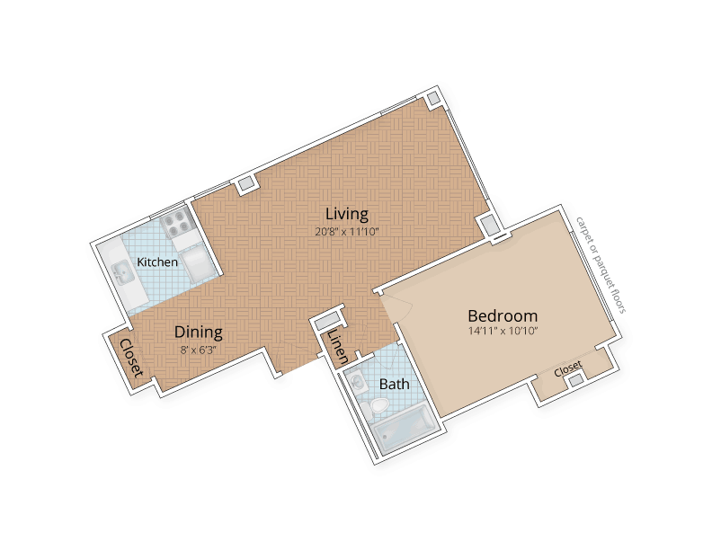 Estudio, 1 Baño, 400 pies²Disponible AhoraGalería del Modelo