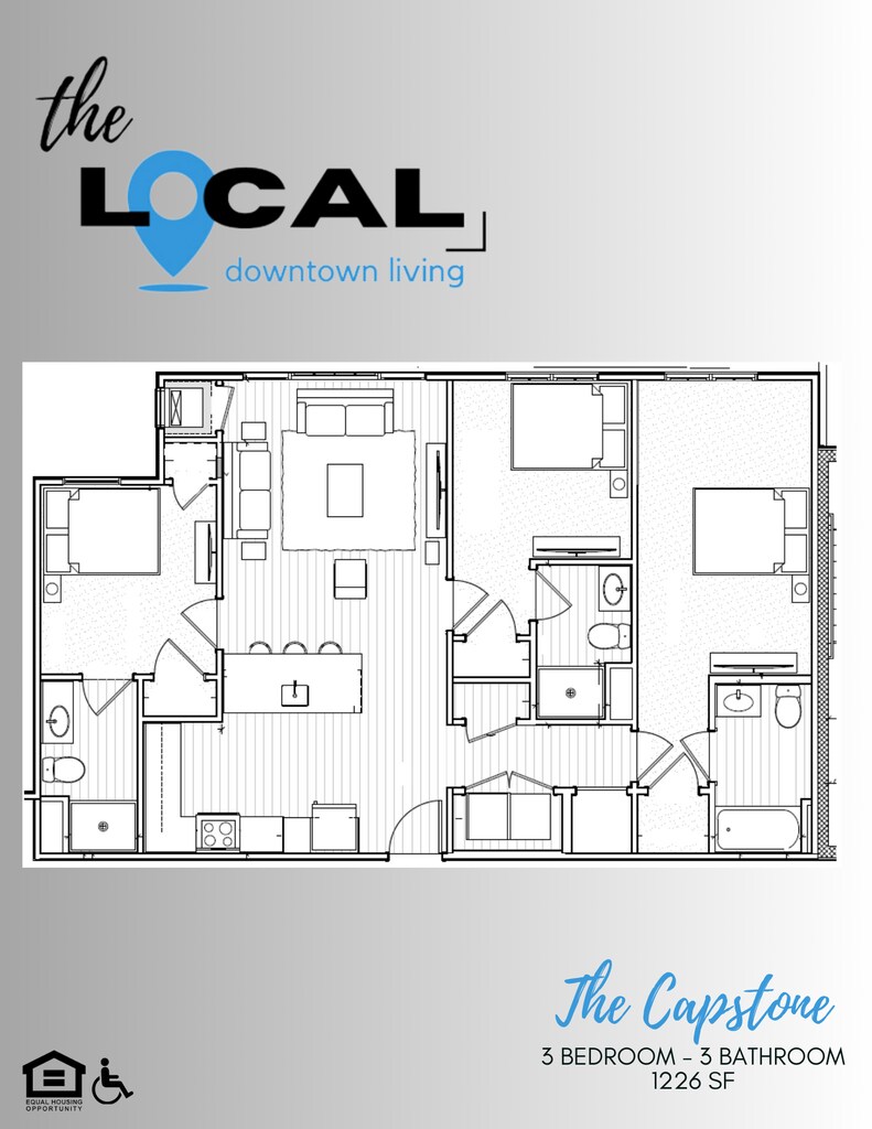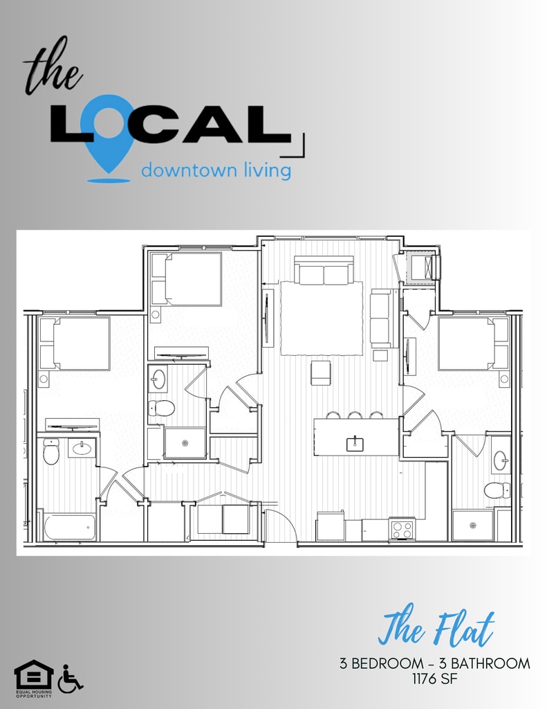 Modelo de apartamento: The Flat$2,1003 Dormitorios, 3 Baños, 1176 sq ftDisponible AhoraThe Flat - Plano 1 The Capstone