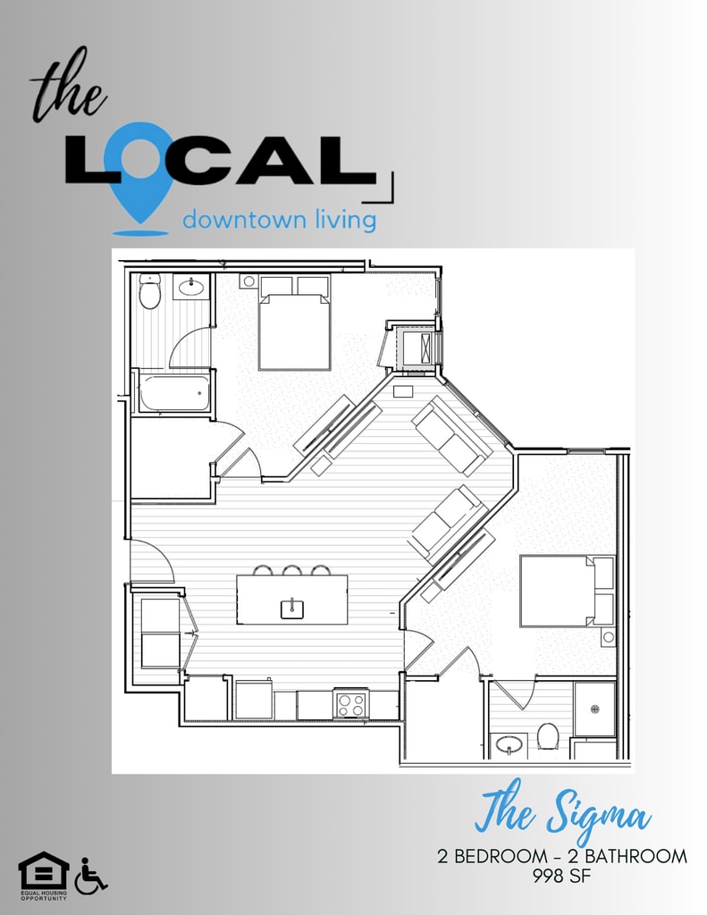 Modelo de apartamento: The Sigma$2,0002 Dormitorios, 2 Baños, 998 sq ftDisponible AhoraThe Sigma - Plano 1 3 Dormitorios