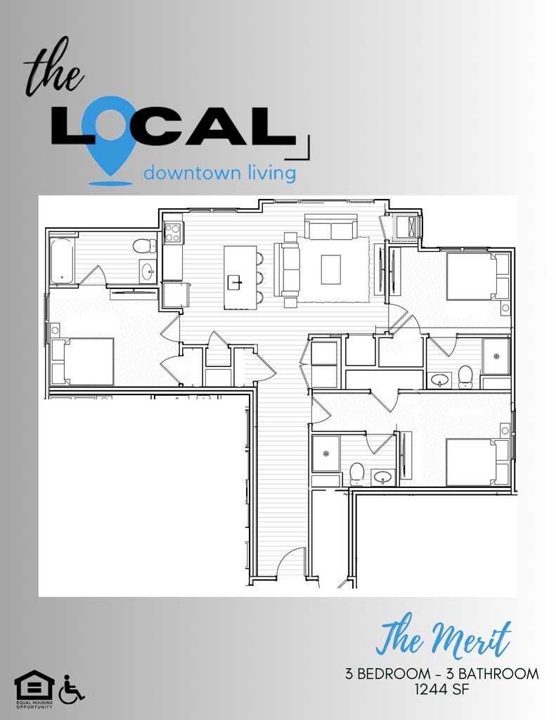 Modelo de apartamento: The Merit$2,3003 Dormitorios, 3 Baños, 1244 sq ftDisponible AhoraThe Merit - Plano 1 4 Dormitorios