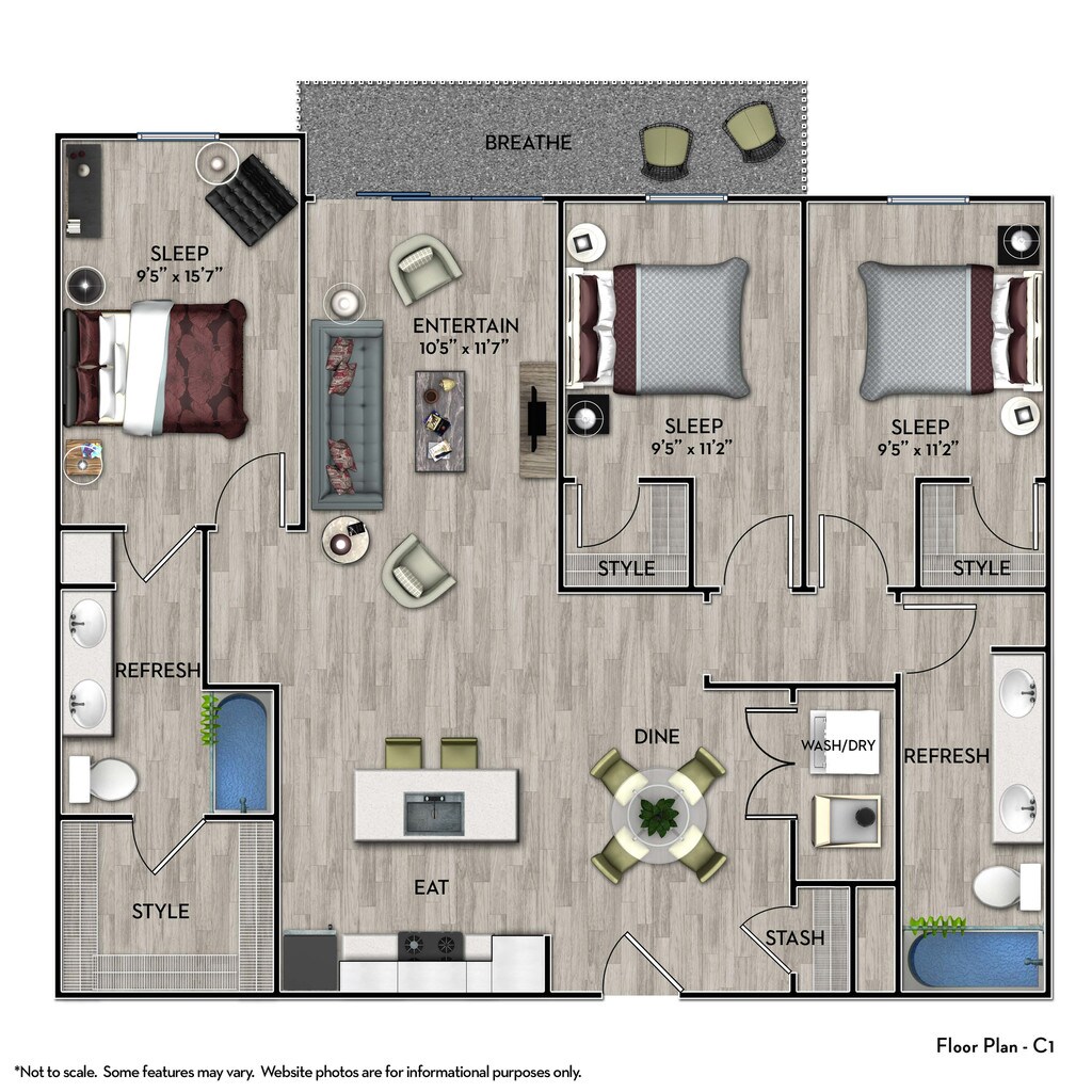 Modelo de apartamento: A1Desde $1,6131 Dormitorio, 1 Baño, 768 sq ftDisponible Ahora![]()