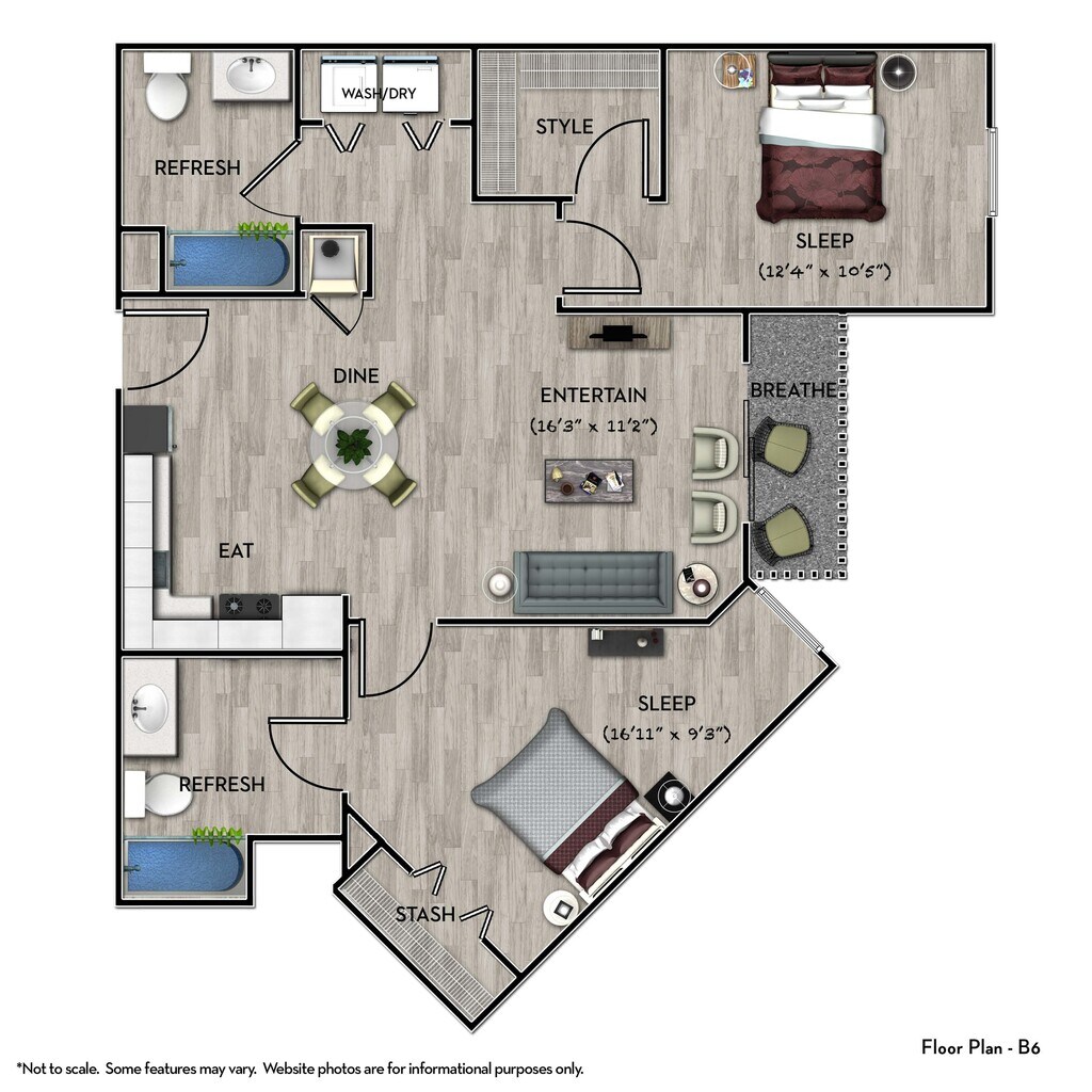 Modelo de apartamento: A2Desde $1,4991 Dormitorio, 1 Baño, 700 sq ftDisponible Ahora![]()