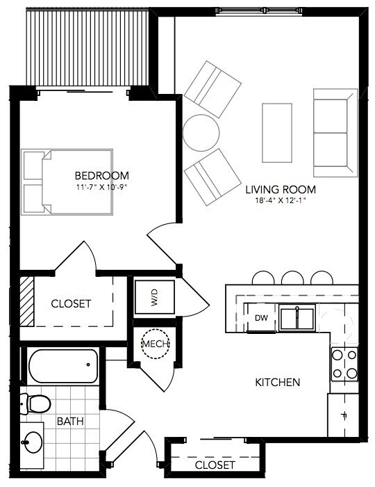 1 Dormitorio, 1 Baño, 790-797 pies²Precio Mensual TotalDisponible Feb 27El más grandeEsta opción tiene las unidades más grandes para este modeloGalería del Modelo
