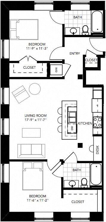 Modelo de apartamento: The CaryDesde $1,7541 Dormitorio, 1 Baño, 790-797 sq ftDisponible February 27, 2026Los planos son representaciones artísticas. Todas las dimensiones son aproximadas. El producto y las especificaciones reales pueden variar en tamaño o detalle. No todas las características están disponibles en cada vivienda en alquiler. Por favor, consulta con un representante para obtener más detalles.