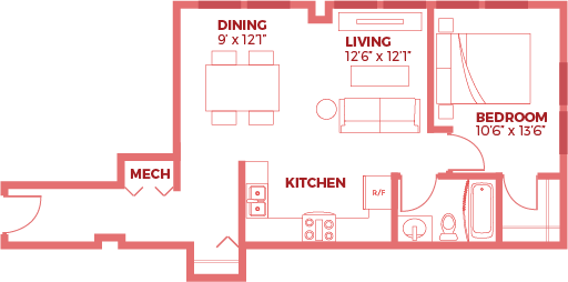 1 Bedroom - Plano 8 Unidad de apartamento: 506Modelo de apartamento: 1 Bedroom$1,3481 Dormitorio, 1 Baño, 620 sq ftDisponible Ahora![]()