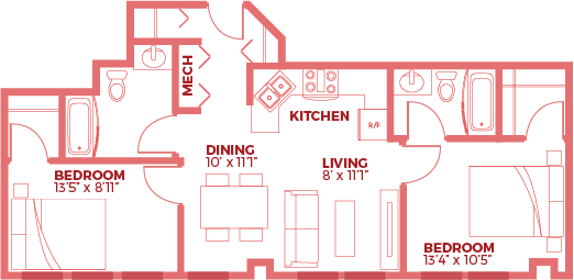 2 Bedroom-1 Bath - Plano 1 Unidad de apartamento: 509Modelo de apartamento: 2 Bedroom-1 Bath$1,4682 Dormitorios, 1 Baño, 897 sq ftDisponible Ahora![]()