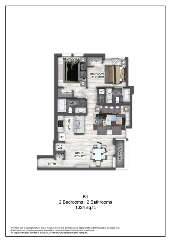 1 Dormitorio, 1 Baño, 636 pies²Disponible AhoraGalería del Modelo
