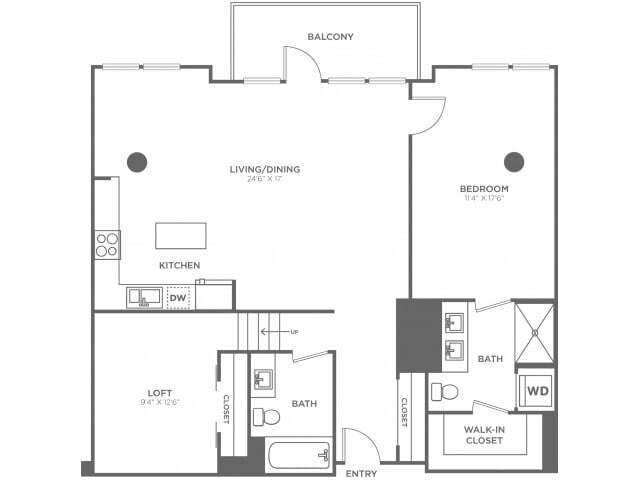 One Bedroom Two Bath w/Loft (1200 SF) - Plano 1 Unidad de apartamento: 614Modelo de apartamento: One Bedroom Two Bath w/Loft (1200 SF)Desde $2,7731 Dormitorio, 2 Baños, 1200 sq ftDisponible AhoraOne Bedroom One Bath w/Loft (1010 SF)