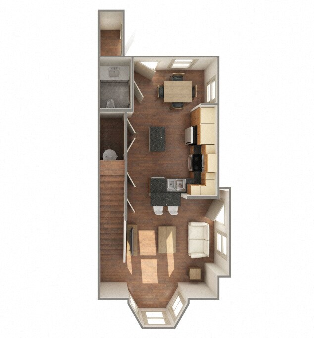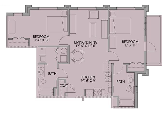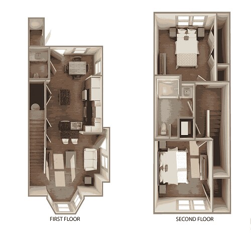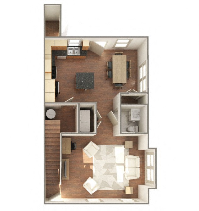 Modelo de apartamento: 2 Bedroom Loft2 Dormitorios, 1 Baño, 1021-1205 sq ftDisponible Ahora![]()