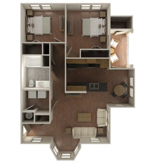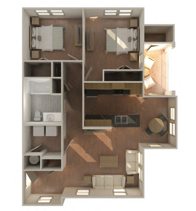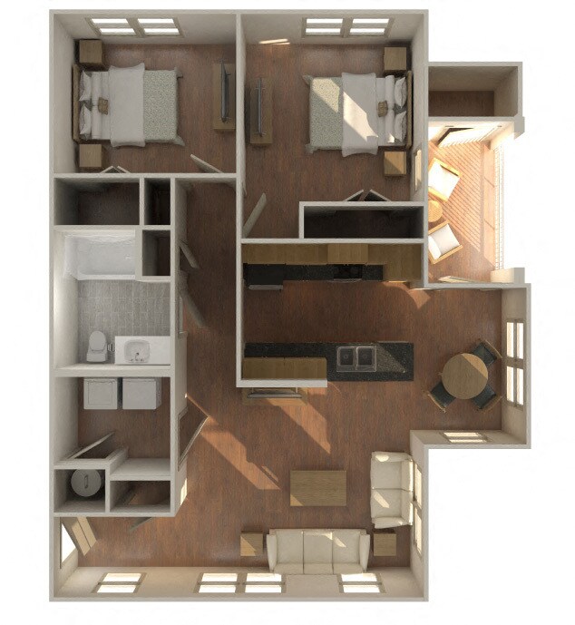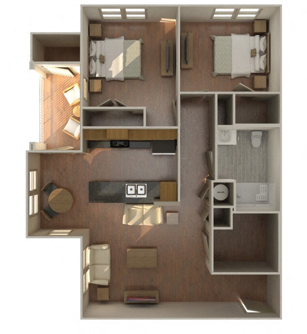 2 Dormitorios, 1 Baño, 1065 pies²Disponible AhoraGalería del Modelo