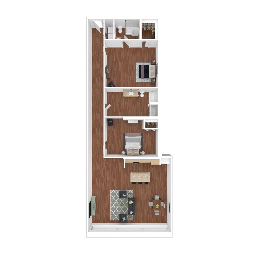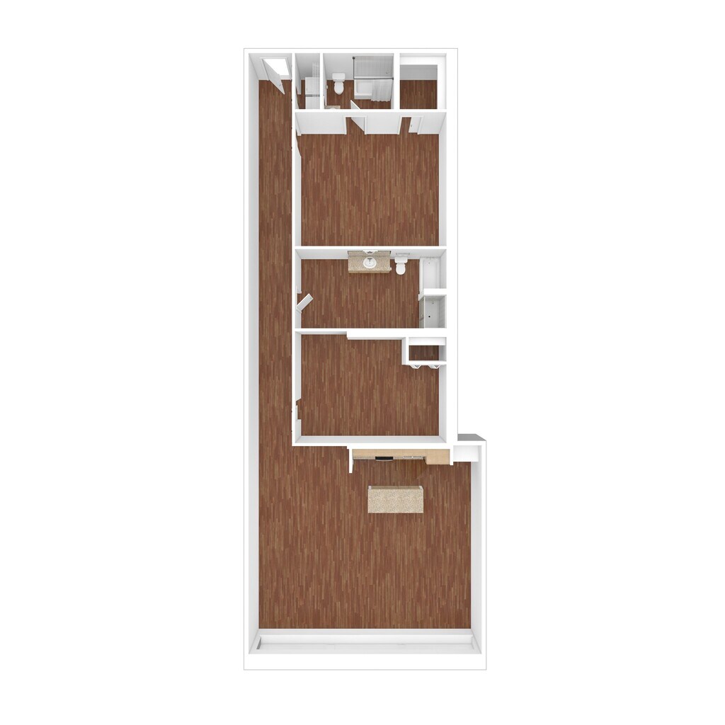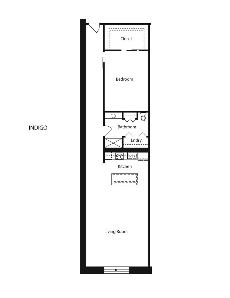 Modelo de apartamento: IndigoLlame para Precios1 Dormitorio, 1 Baño, 2232 sq ftNo Disponible![]()