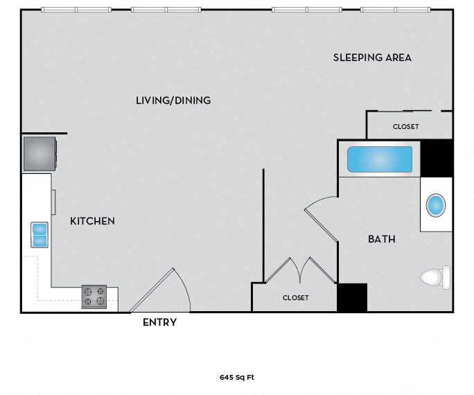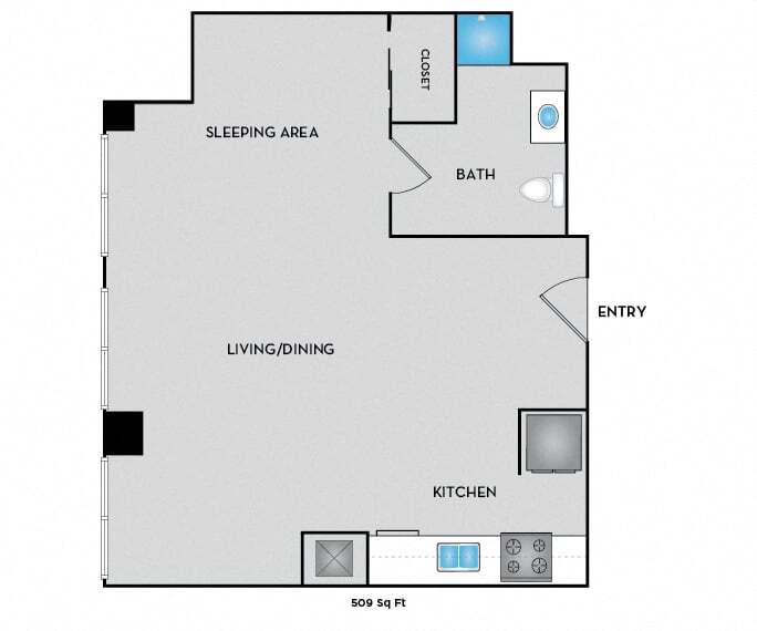 Estudio, 1 Baño, 509-580 pies²Precio Mensual TotalDisponible AhoraPrecio Mensual Total