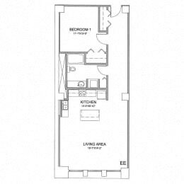 Estudio, 1 Baño, 631 pies²Disponible AhoraGalería del Modelo