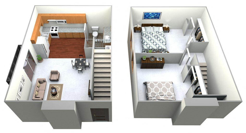 2 Dormitorios, 1 Baño, 800 pies²Galería del Modelo