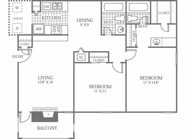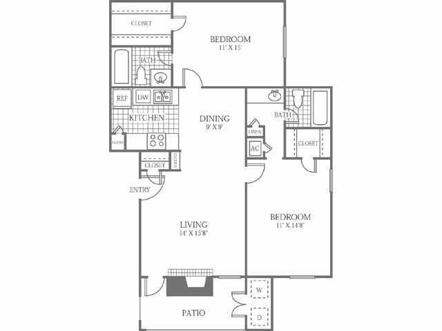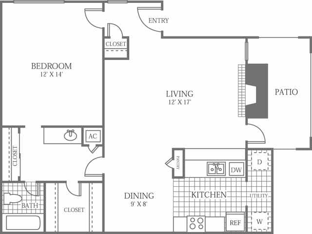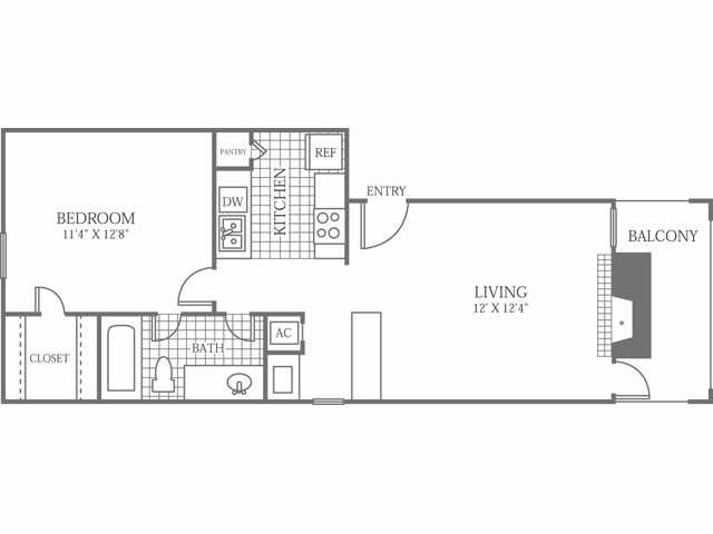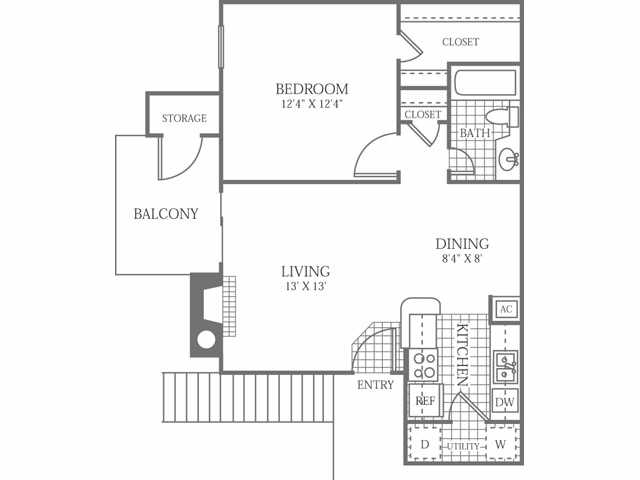 Modelo de apartamento: A1Desde $9991 Dormitorio, 1 Baño, 551 sq ftDisponible AhoraPlanosFotos![]()