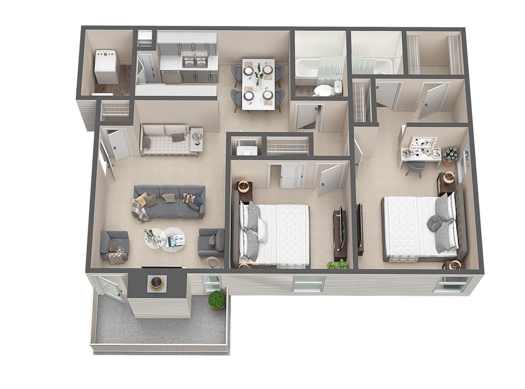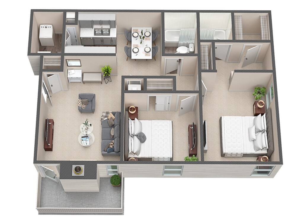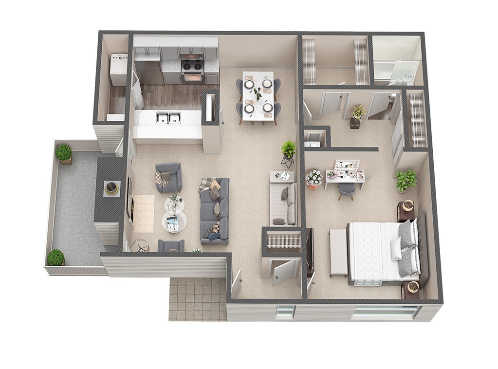 1 Dormitorio, 1 Baño, 592 pies²Disponible AhoraGalería del Modelo