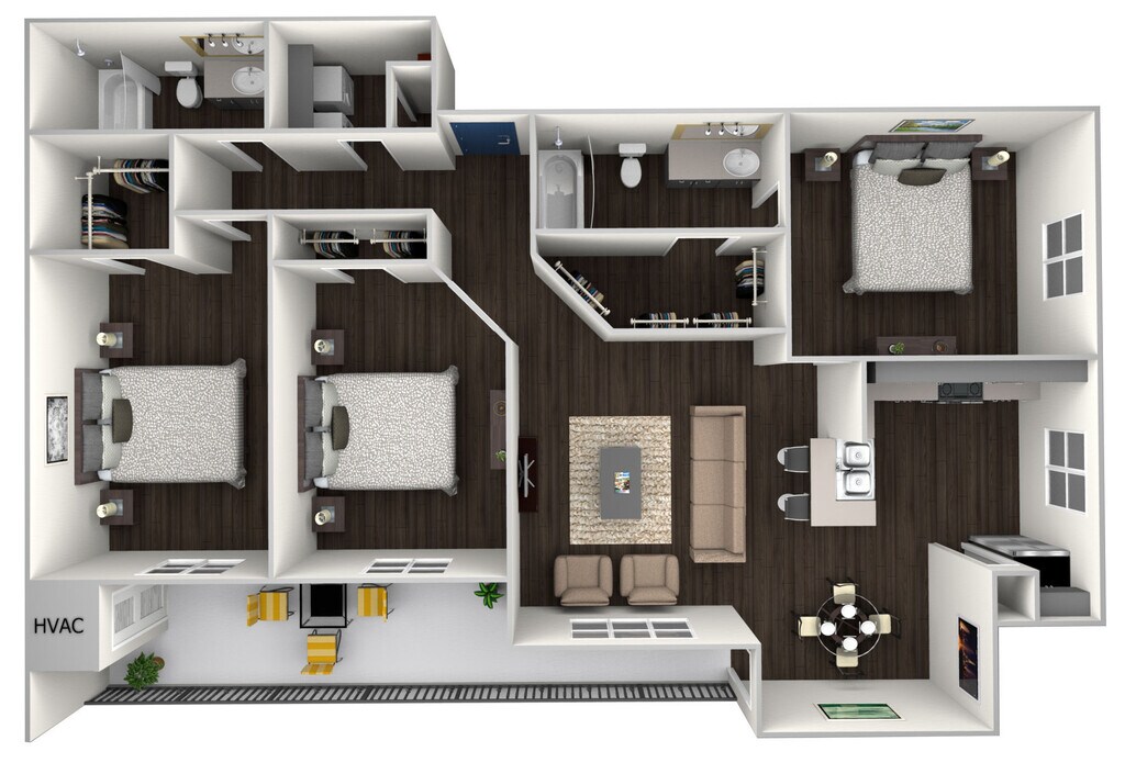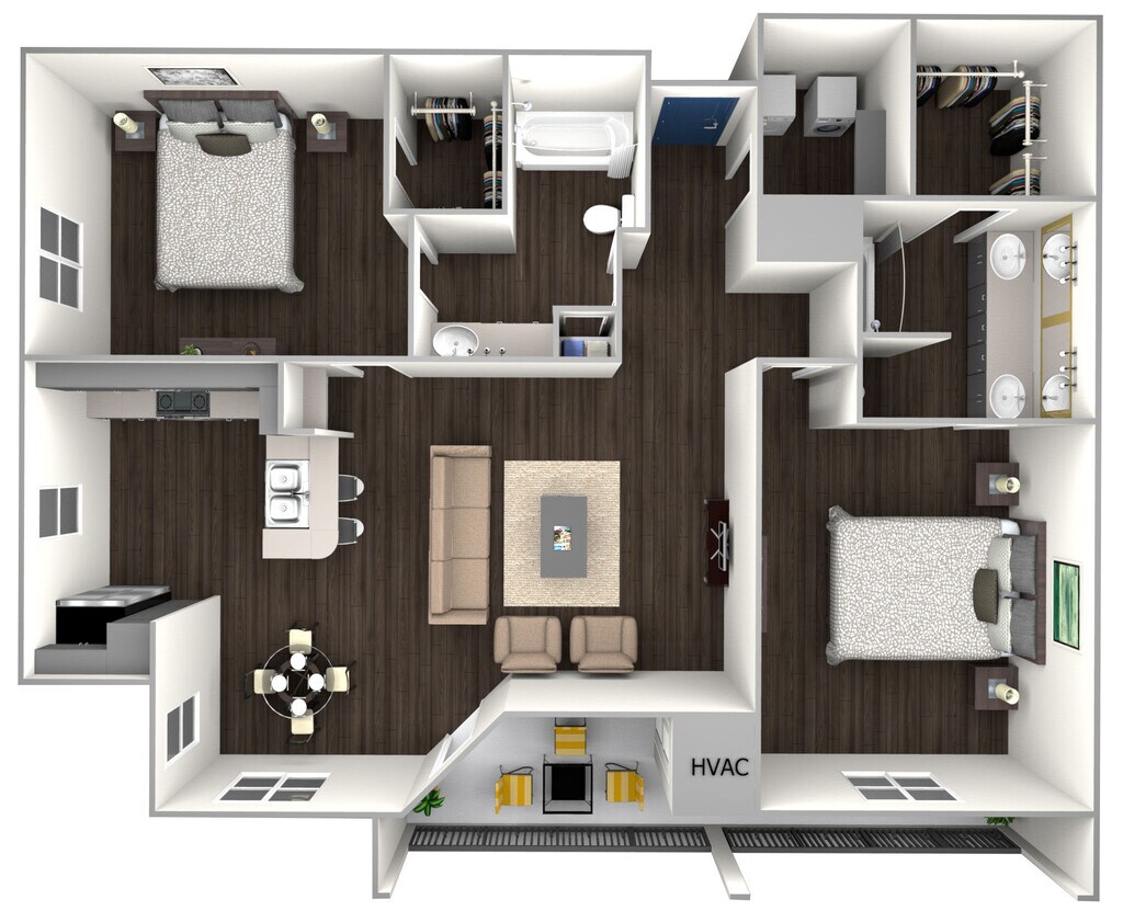 1 Dormitorio, 1 Baño, 852 pies²Disponible AhoraGalería del Modelo