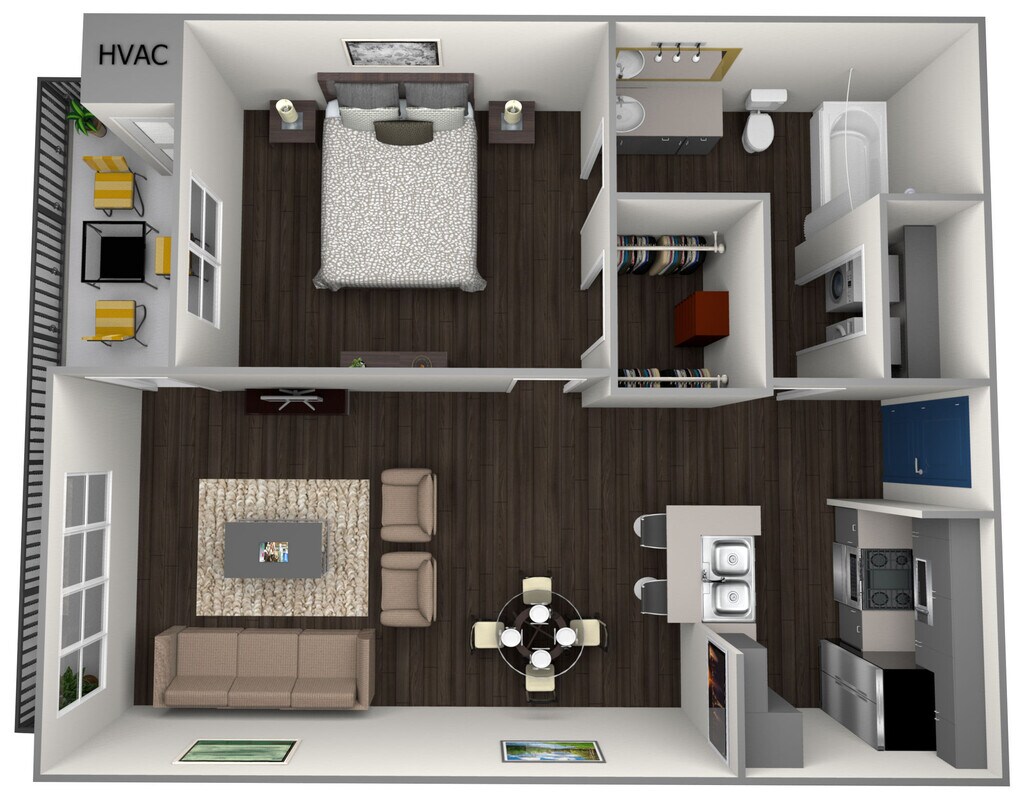 1 Dormitorio, 1 Baño, 699 pies²Disponible AhoraGalería del Modelo