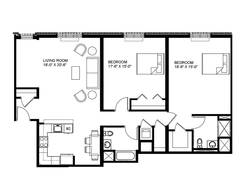 1 Dormitorio, 1 Baño, 1015 pies²Disponible AhoraGalería del Modelo