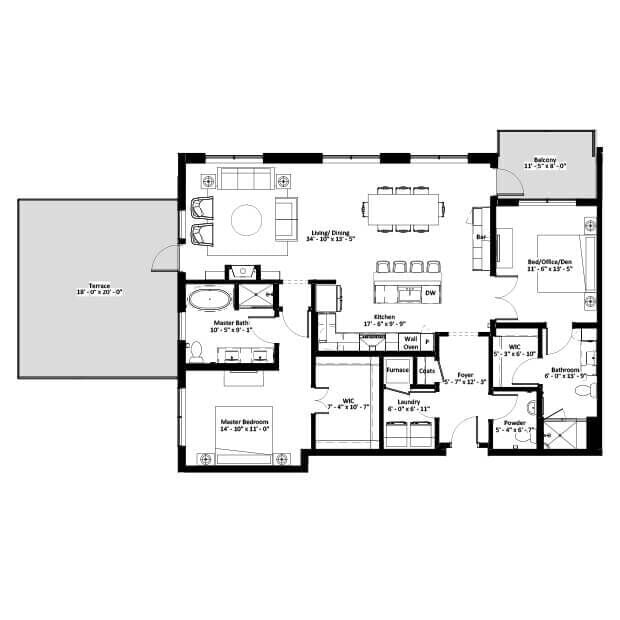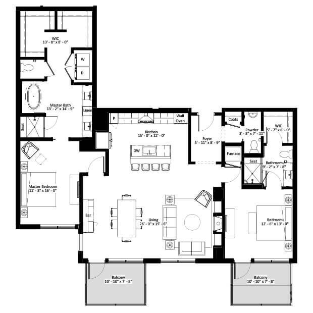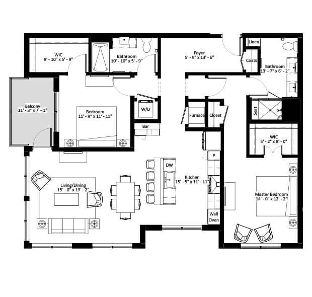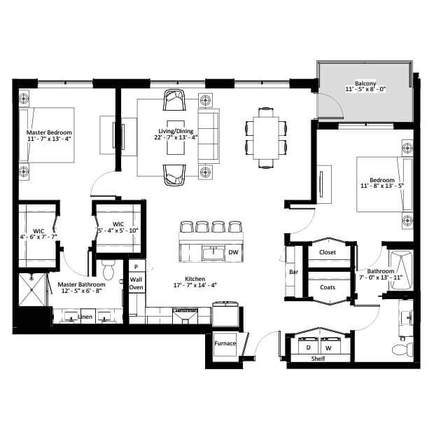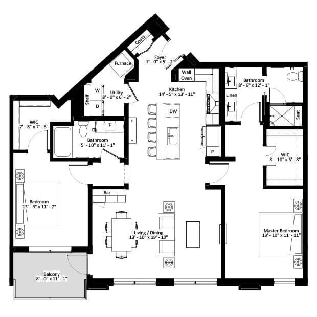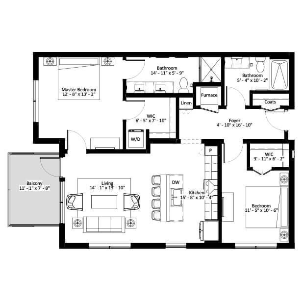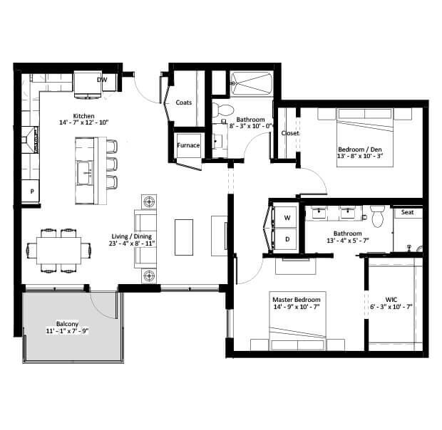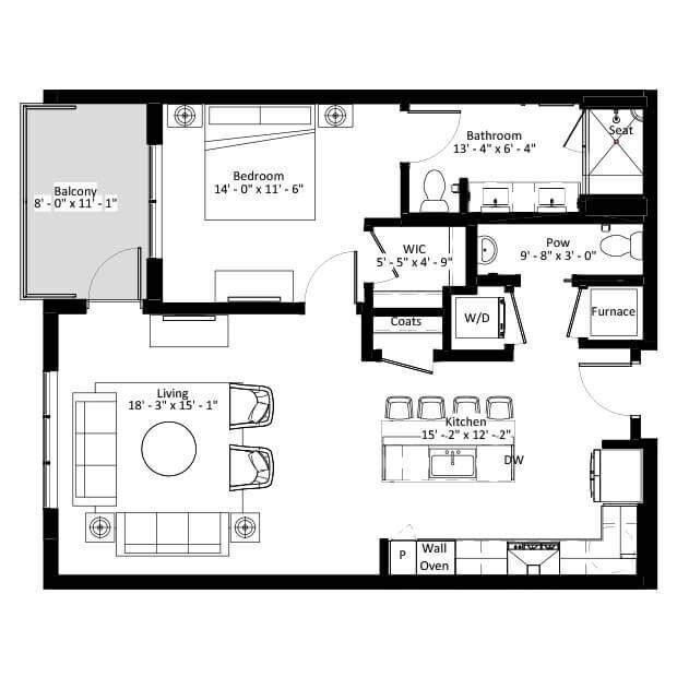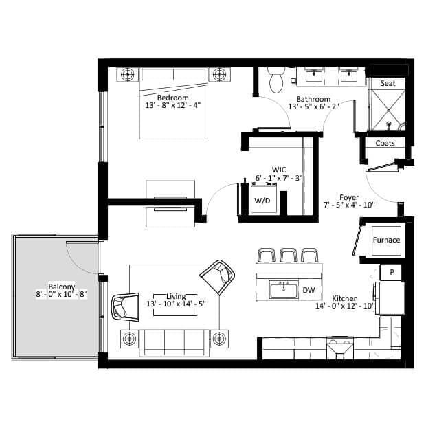 1 Dormitorio, 1 Baño, 1400 pies²El más grandeEsta opción tiene las unidades más grandes para este modeloGalería del Modelo